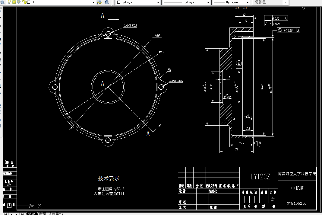 4. 完成了 60mm直径超声电机的装配图和零件图的设计;