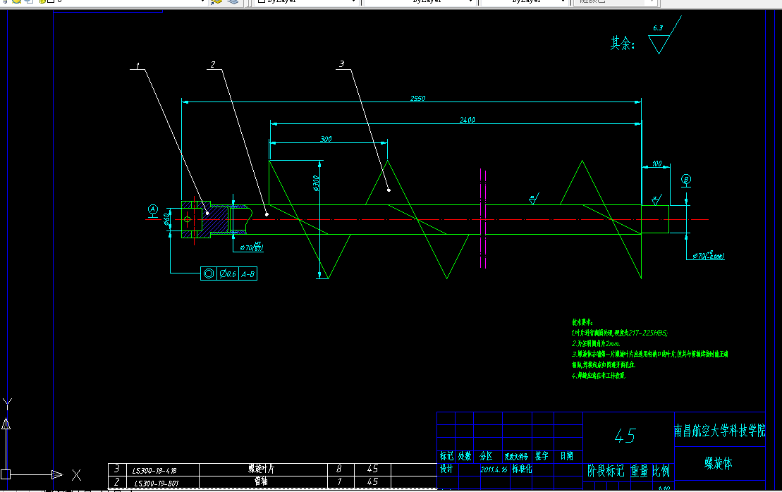 此次设计使用优化思想和方法,通过对给料器完整的设计计算使得输送量和效率得到较合理的匹配,输送性能和传输能力的主要参数分析和使用与改善在生产上的实用合理性。课题对螺旋给料器的设计研究的方法、理论分析结合起来,对整机进行全面的性能、参数的影响深入研究。根据选型要求,设计参数选择的原则和方法鉴定确定该机为LS型螺旋给料器。优化螺旋叶片,结合实际完成的工作目标经过计算后采用右旋弯曲母线螺旋面满面式叶片,确定最合理的填充系数即进料量、螺距大小等。采用变频调速器或调速电机,使螺旋给料器应用中提高劳动生产率、改善质量、提高设备自动化程度等。