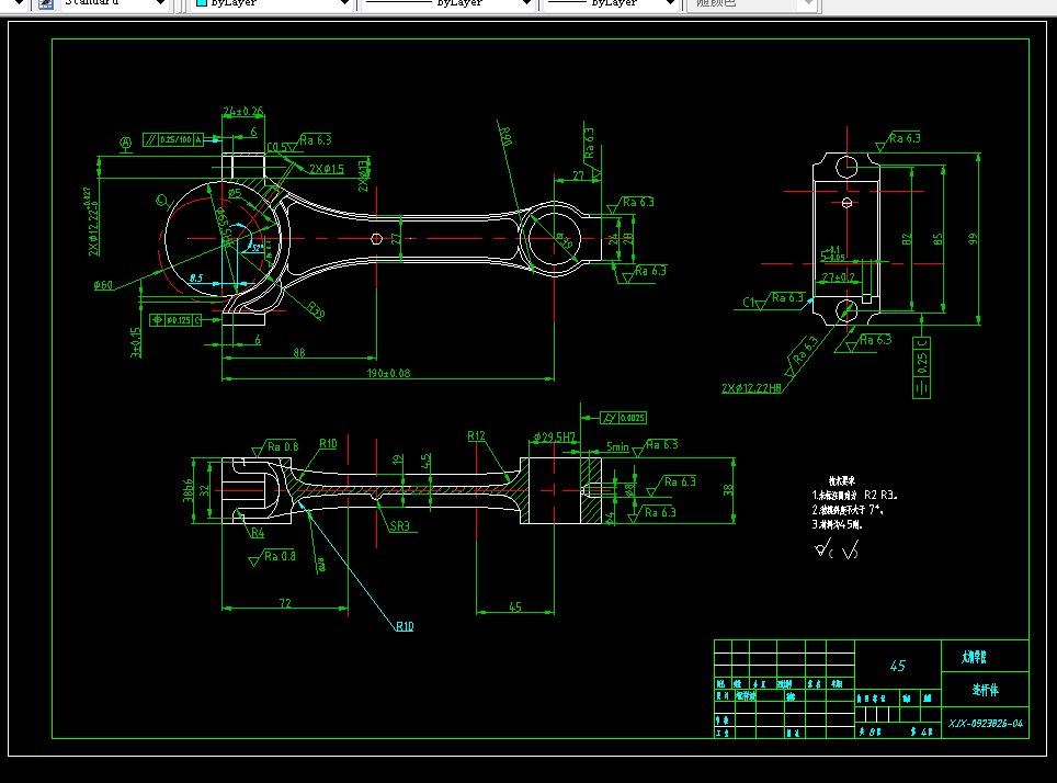 连杆是柴油机的主要传动件之一,本文主要论述了连杆的加工工艺及其夹具设计。连杆的尺寸精度、形状精度以及位置精度的要求都很高,而连杆的刚性比较差,容易产生变形,因此在安排工艺过程时,就需要把各主要表面的粗精加工工序分开。逐步减少加工余量、切削力及内应力的作用,并修正加工后的变形,就能最后达到零件的技术要求。