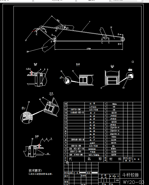 摘 要:本次设计的题目是液压挖掘机反铲装置机构。与其它类型的挖掘机相比,这种类型的挖掘机因有良好通过性能应用最广,对松软地面或沼泽地带还可采用加宽、加长以及浮式履带来降低接地比压。液压挖掘机反铲装置的主要特点为:反铲是中小型液压挖掘机的主要工作装置。液压挖掘机的反铲装置由动臂,斗杆铲斗,以及动臂油缸,斗杆油缸,铲斗油缸和连杆机构组成。其构造特点是各部件之间的连接全部采用铰接,通过油缸的伸缩来实现挖掘工作中的各种动作。动臂的小铰点与回转平台铰接,并以动臂油缸来支撑和改变动臂的倾角,通过动臂油缸的伸缩可使动臂绕小铰点转动而升降。斗杆铰接于动臂的上端,斗杆与动臂的相对位置由斗杆油缸来控制,当斗杆油缸伸缩时,斗杆便可绕动臂上焦铰点转动。铲斗与斗杆前端铰接,并通过铲斗油缸伸缩使铲斗绕该点转动。为增大铲斗的转角,通常以连杆机构与铲斗连接。本次设计的主要参数是斗容量0.2m3,它属于中小型液压挖掘机,主要设计挖掘机的工作装置。