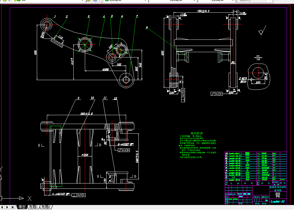 这次设计先介绍了装载机的工作机构利用AUTOCAD2007对装载机的工作机构进行了初步设计,然后对这种轮式装载机工作机构进行了总体设计到零部件设计。主要包括轮式装载机工作机构的关键零部件,如铲斗、连杆机构以及转斗油缸、举升油缸等,并对重要零件进行了刚度、强度分析,以验证设计合理性。
