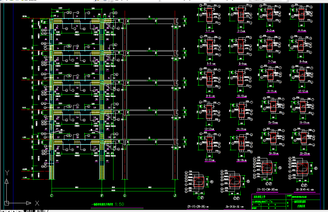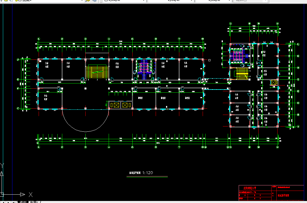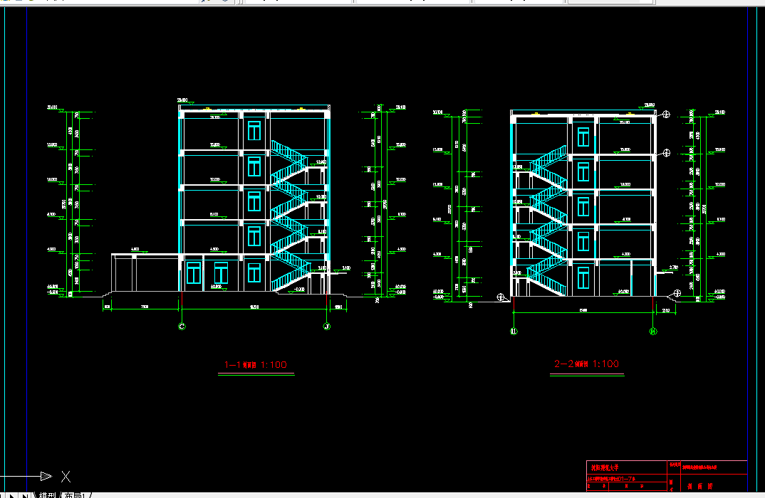 (2) 建筑用地100 100㎡,建筑面积:7120m2,占地面积:1685.7m2,共五层,顶层层高为4.2m,二至四层为3.9m,底层为4.2m,楼内2部楼梯。柱网尺寸见建筑图。