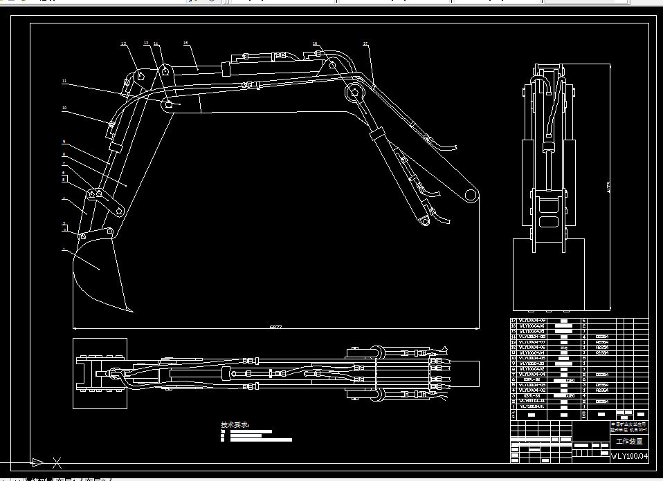 在设计中,我采用了汽车盘并加以改一个更大的范围内工作,因造以满足要求,上部转台是全回转式,因此它可在采用了液压传动控制而使整机性能得以改善.与机械式挖掘机相经,其挖掘机力提高了很多,整机质量约26吨,挖掘力140KN,卸载高度约4.59m,挖掘深度5.089m,挖掘半径9.075m.