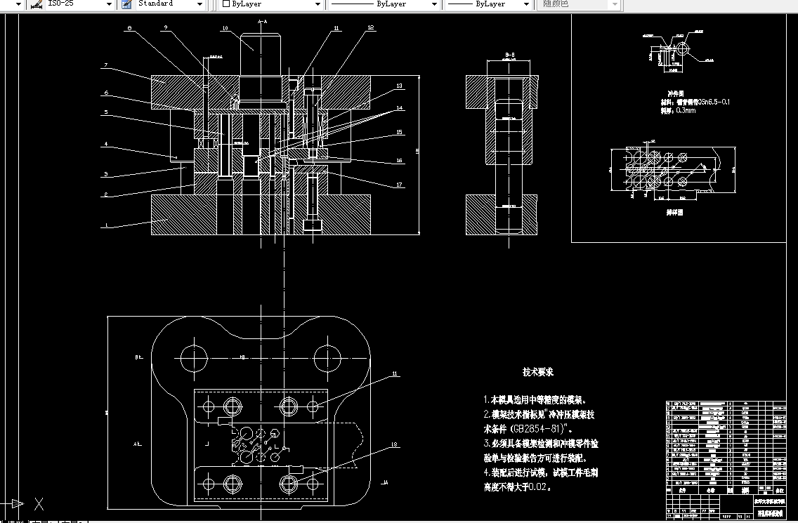 本文主要介绍了模具设计的过程和建模过程。本次设计,模具采用级进模的工艺方案,便于提高生产率、方便操作并且零件精度和平直度较好,生产效率高,模具强度能够保证。合理安排生产可用手工送料方式能够达到批量要求,且能降低模具成本。考虑零件尺寸较小,材料厚度较薄,为了便于操作和保证零件的精度,宜采用导料板导向、侧刃定距的定位方式。为减小材料消耗和提高定距的可靠性,采用双侧刃前后对角布置。卸料与出件方式,采用弹性卸料方式。冲件和废料采用凸模直接从凹模洞口推下的下出件方式。设计计算模具各零件的结构和尺寸。最后采用CATIA对模具的各个零件进行建模,以检测零件的各项数据。再对各个零件进行装配里检测整套模具的合理性。优化模具的结构和性能。