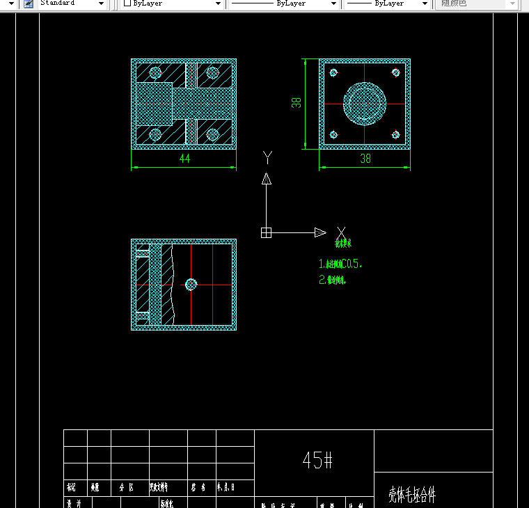壳体工艺规程及其钻、攻4-M3螺纹的工装夹具设计是包括零件加工的工艺设计、工序设计以及专用夹具的设计三部分。在工艺设计中要首先对零件进行分析,了解零件的工艺再设计出毛坯的结构,并选择好零件的加工基准,设计出零件的工艺路线;接着对零件各个工步的工序进行尺寸计算,关键是决定出各个工序的工艺装备及切削用量;然后进行专用夹具的设计,选择设计出夹具的各个组成部件,如定位元件、夹紧元件、引导元件、夹具体与机床的连接部件以及其它部件;计算出夹具定位时产生的定位误差,分析夹具结构的合理性与不足之处,并在以后设计中注意改进。