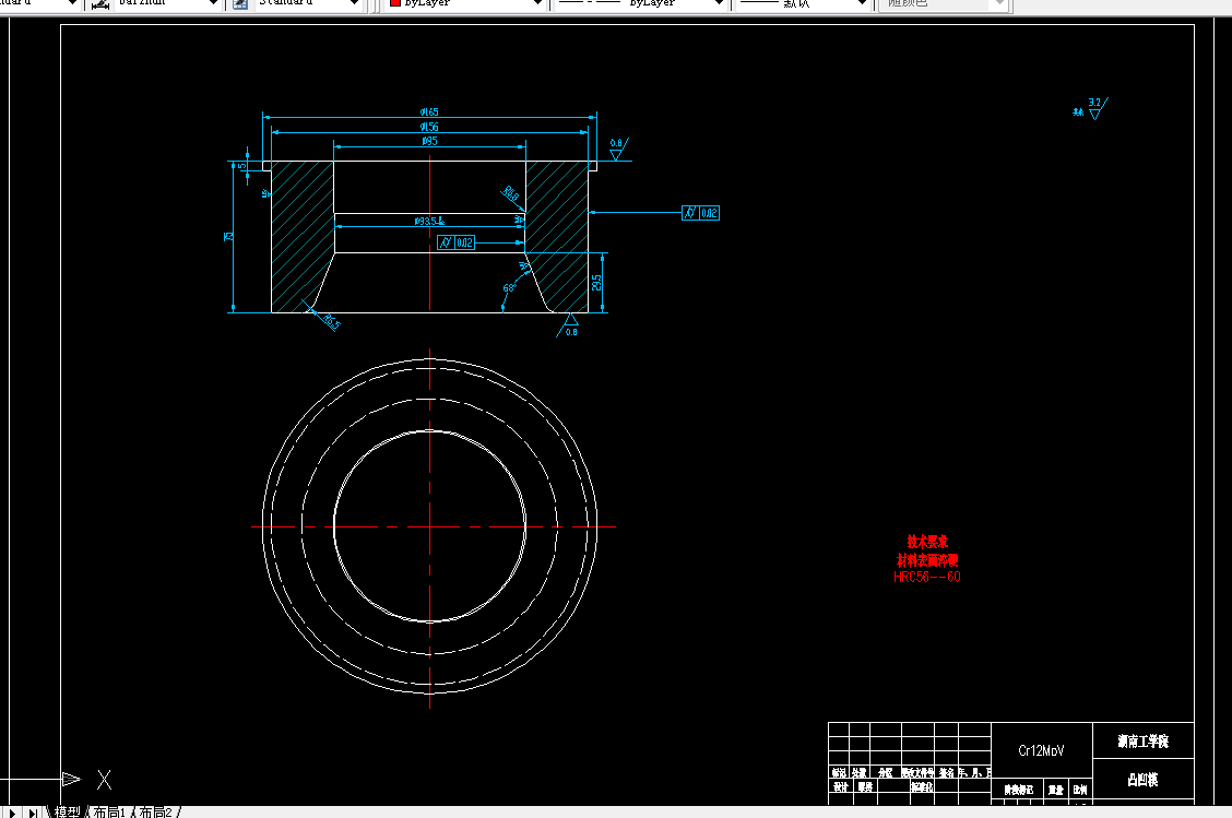 首先对零件进行了工艺性分析,确定冲压所需的如落料、拉深,整形等一系列工序。其次经过计算分析确定工艺方案完成该模具的排样设计,凸、凹模工作部分的设计计算,还有模具结构和工艺零件设计,选择合适的模具材料和合理的加工工艺。在设计过程中,还利用CAD绘制了一套模具装配图和零件图。
