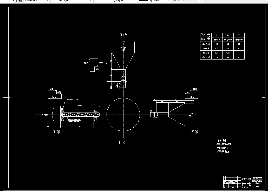 本文根据任务的需要,设计一台能高效、大批量加工摇臂轴后支架φ24F7大孔的专用组合机床 。由于本人主要做的是组合机床的液压系统设计部分,所以文章从工艺方案设计、总体设计和液压系统设计三部分进行设计。本设计中最显著的特点是:滑台的直线运动和工作台的回转运动都是由液压系统来提供动力,液压系统稳定,缓冲能力强,提高了滑台的缓冲能力和回转工作台的转位精度,进而提高了工件的加工精度。摇臂轴后支架大孔由普通机床加工时存在生产率低下、加工精度的稳定性低等问题。通过制定切实可行的、合理的工艺方案,设计出了四工位的扩、镗组合机床,加工质量和生产效率得到大幅度提高,经济和社会效益显著。