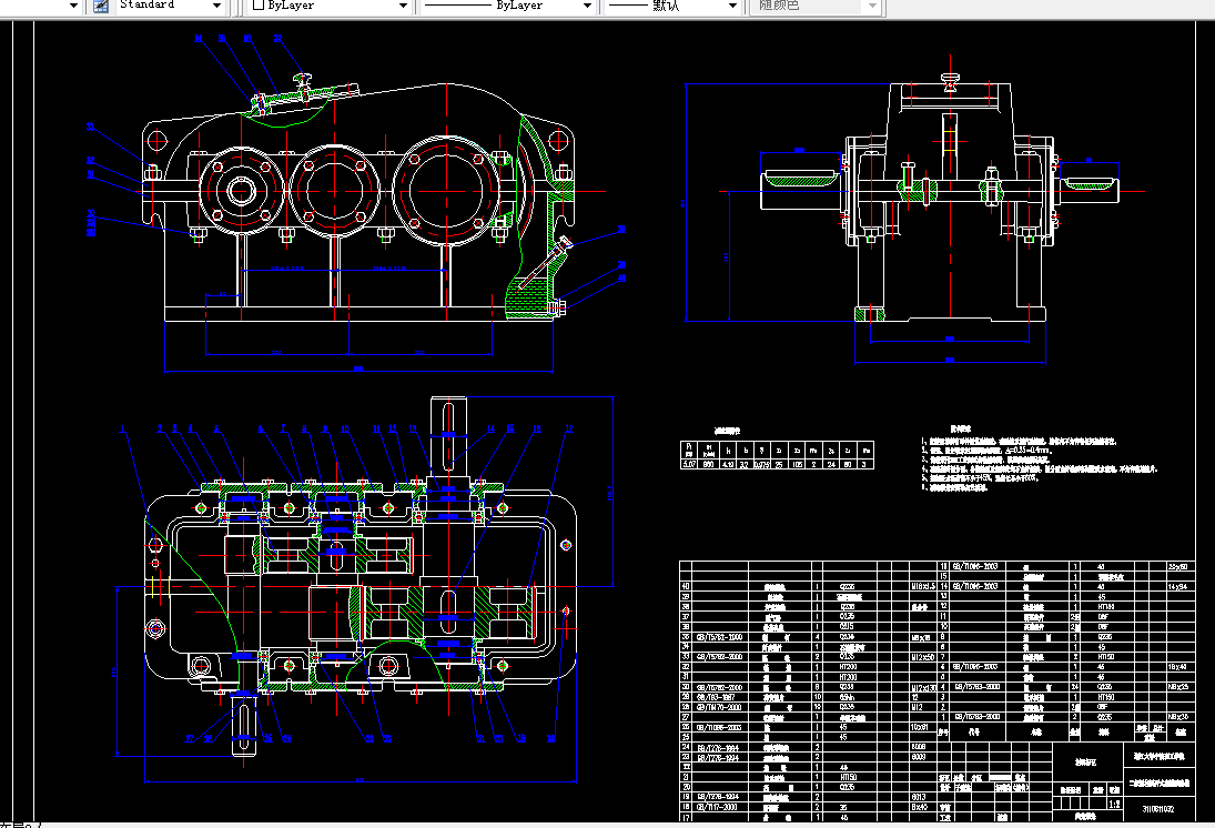 工作条件及生产条件: 该减速器用于带式运输机的传动装置。输送机两班制连续单向运载,载荷平稳,空载起动,室内工作,有粉尘;使用期限为10年(每年300天),大修期3年。该机动力来源为三相交流电,在中等规模机械厂小批生产。运输带速度允许误差为±5%。