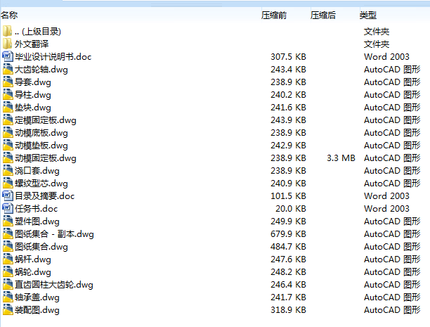 2、若题目上备注三维,则表示文件里包含三维源文件,由于三维组成零件数量较多,为保证预览截图的简洁性,本站将三维文件夹进行了打包。三维及CAD预览截图,均为本站电脑打开软件进行截图的,保证能够打开,下载原件超高清,下载后解压即可;