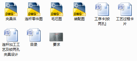 连杆加工工艺规程及夹具设计是包括零件加工的工艺设计、工序设计以及专用夹具的设计三部分。在工艺设计中要首先对零件进行分析,了解零件的工艺再设计出毛坯的结构,并选择好零件的加工基准,设计出零件的工艺路线;接着对零件各个工步的工序进行尺寸计算,关键是决定出各个工序的工艺装备及切削用量;然后进行专用夹具的设计,选择设计出夹具的各个组成部件,如定位元件、夹紧元件、引导元件、夹具体与机床的连接部件以及其它部件;计算出夹具定位时产生的定位误差,分析夹具结构的合理性与不足之处,并在以后设计中注意改进。
