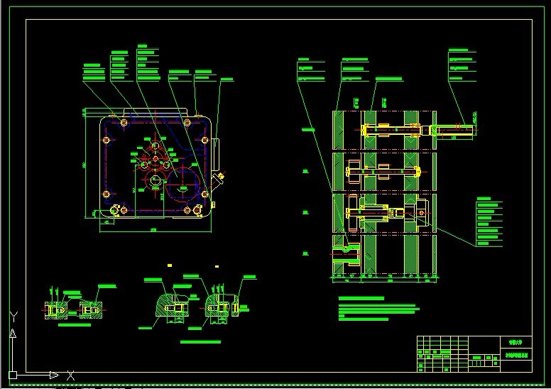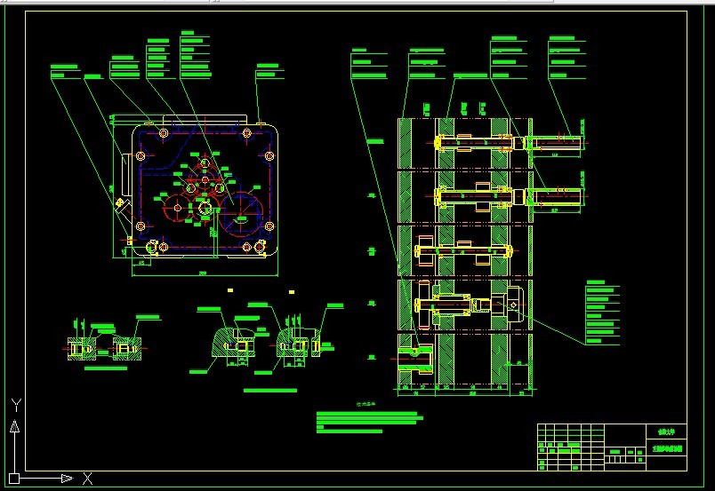 主轴箱设计,按专用要求进行设计,由通用零件组成,其主要作用是根据被加工零件的要求,安排各主轴位置并将动力和运动由电机或动力部件传给各主轴,使之得到要求的转速,本机床多轴箱箱体尺寸自行设计,用中间传动轴带动主轴传动。