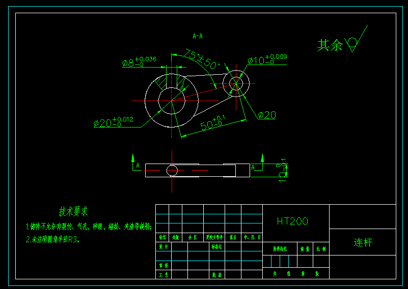 题目是基于斜连杆零件的加工工艺规程及钻孔工序的专用夹具设计。斜连杆零件的主要加工表面是端面及孔系。往往,表面精密加工精度优于确保简单孔的寿命。孔后的设计遵循所述第一表面的原理。一般来说,表面精密加工精度优于确保简单孔的寿命。孔后的设计遵循所述第一表面的原理。与孔加工平面,在粗加工明确的划分和整理阶段,以确保精确孔。与孔加工平面,在下一步骤中,除了在单个进程的顶面和定位孔技术和在平面其他孔的外面。支持孔加工系统采用坐标镗床。整个过程通常由。使用专用夹具夹具,夹多用气动夹紧,夹持,需要可靠的,自锁不了,大批量,因此更高的生产率,在加工生产线,以满足设计。