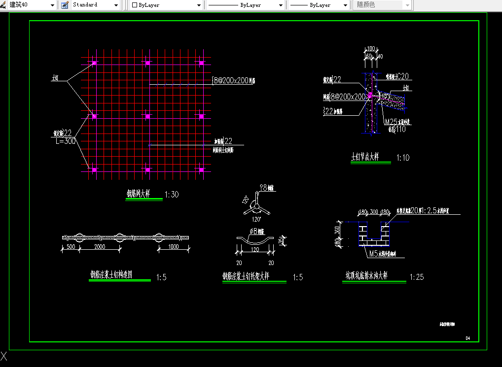 本工程先用PKPM建模,通过电算得到的结果,进行合理性判断。将所得的内力进行调整,加上底层墙体的重量以及其他项目。再用调整后的基础内力计算基础。基坑支护方面,使用理正深基坑支护软件电算,将电算出来的结果根据实质情况进行合理性判断。按抗拉力等基坑支护方面的规范,土质情况,工程经验,施工要求把土钉直径和长度归类调整。经过计算后制图。