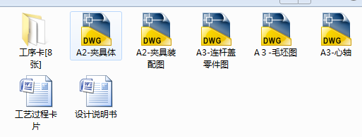 连杆盖工艺规程及其铣螺栓孔背面的工装夹具设计是包括零件加工的工艺设计、工序设计以及专用夹具的设计三部分。在工艺设计中要首先对零件进行分析,了解零件的工艺再设计出毛坯的结构,并选择好零件的加工基准,设计出零件的工艺路线;接着对零件各个工步的工序进行尺寸计算,关键是决定出各个工序的工艺装备及切削用量;然后进行专用夹具的设计,选择设计出夹具的各个组成部件,如定位元件、夹紧元件、引导元件、夹具体与机床的连接部件以及其它部件;计算出夹具定位时产生的定位误差,分析夹具结构的合理性与不足之处,并在以后设计中注意改进。
