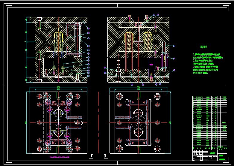 本课题主要是针对防护罩的模具设计, 防护罩具有重量轻、易清洁、耐腐蚀老化、强度高、使用寿命长,制作方便、价格低廉等特点。通过对塑件进行工艺的分析和比较,最终设计出一副注塑模。该课题从产品结构工艺性,具体模具结构出发,对模具的浇注系统、模具成型部分的结构、顶出系统、冷却系统、注塑机的选择及有关参数的校核、都有详细的设计,同时并简单的编制了模具的加工工艺。通过整个设计过程表明该模具能够达到此塑件所要求的加工工艺