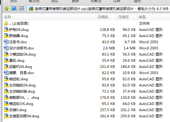 1) 连续式履带装煤机的装运部设计,主要包括:装载部星轮设计和运输部的刮板输送机的设计与选型;