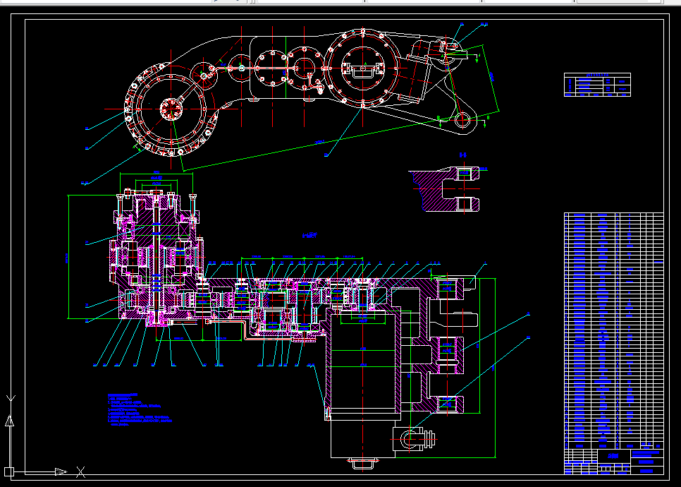 在采煤机截割部设计过程中,对各级传动齿轮、轴、轴承和联接用的花键等部件进行了设计计算、强度校核和选用。另在行星齿轮传动中,着重分析了四行星轮的结构设计。采煤机滚筒截齿的配置在本设计中也做了合理的分析和布置。对于摇臂调高液压系统,本设计另外选用电机驱动调高泵,其液压元件的选用也做了适当的说明和介绍。最后本设计对采煤机的使用和维护作了简要的说明。