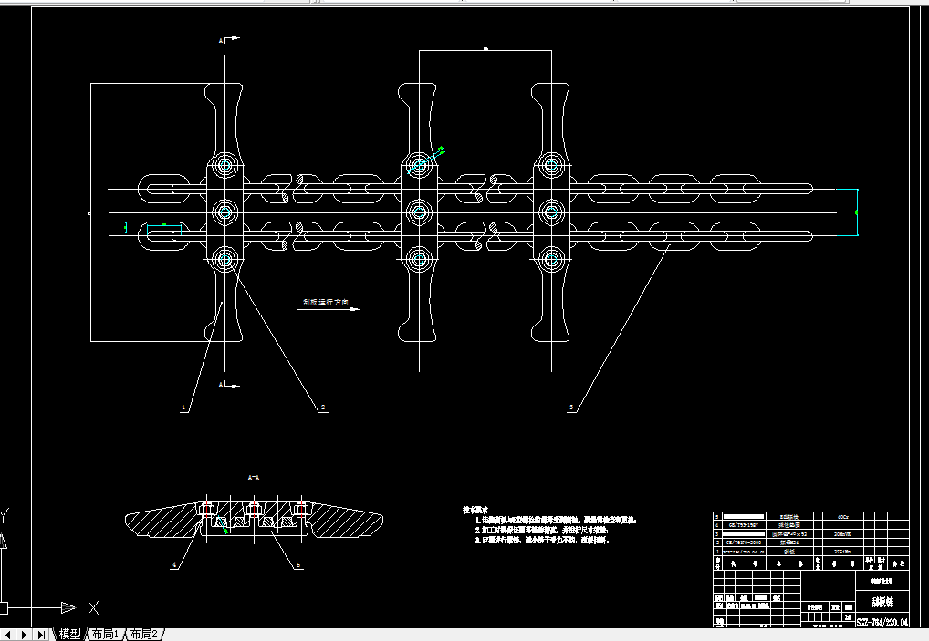 在本次设计中,根据刮板输送机的动力装置采用防爆型异步电动机,按设计要求计算所需要功率后选择采用2台YB315-L2-6型防爆异步电动机。使电动机经过液力偶合器和减速器相连。还根据功率和转速选择了YL-560型液力偶合器。减速器是自己设计的三级圆锥——圆柱齿轮减速器,根据刮板的传动要求使减速器与链轮相连,驱动绕过链轮的圆环链,圆环链绕过机头和机尾链轮进行无级闭合循环运行。设计了用E型螺栓使圆环链和刮板连接,刮板将溜槽中的煤炭推移到机头处的卸载点卸载。本次设计中中部槽的挡煤板采用的是高分子量聚乙烯钢塑材。溜槽是由中部槽,调节槽和过渡槽连接而成的,它们的连接方式我采用的是哑铃连接方式。