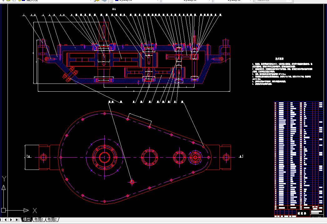 1、采用锥齿轮减速箱设计,绘制相关毕业设计3张零号图纸;