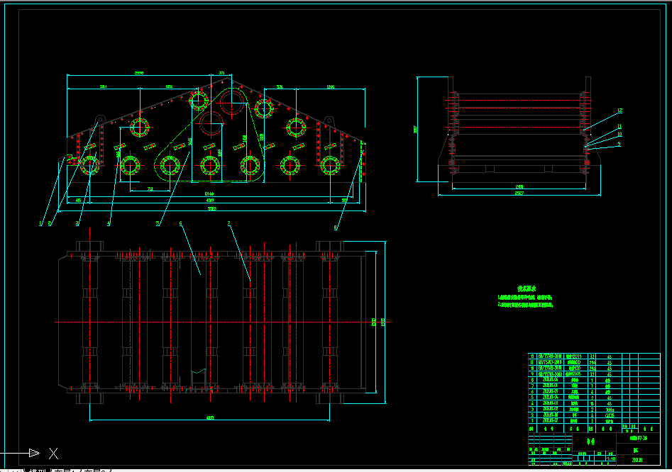 本次设计结构与普通筛不一样,它有4块侧板,中间两侧是主要的,振动器安装在它上面,由它向筛面传递振动力,外面两块是次要的,只起挡料板的作用。物料是通过三个通道筛分和运输的,这种结构的最大优点是横梁尺寸可以大大减小,大大降低参振质量。经济效益十分明显,而且筛型越大,效果越明显。