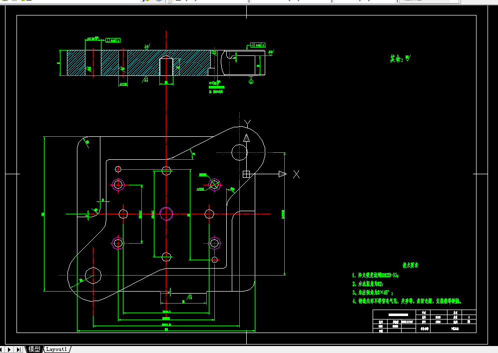 经过漫长的发展岁月,产品设计手段在不断地提高,不断进步,不断成熟。从最早的手工绘图,到现在的广泛使用计算机辅助设计来进行产品的设计,并且以后还会有更先进的设计手段出现。本次设计就主要应用了先进的制图软件,如CAXA、CAD、Pro-e等。其次,现代模具产业是装备工业中一项技术密集、资本密集、高投入的产业,是加工设备产业中不可分割的一部分。模具工业的发展必须与国民经济中的支柱产业相适应,如机械,汽车,电子,通讯,电器,石油化工,建筑。从支柱产业对模具的需求,我们可以看到模具工业有重要的地位。高精密,高复杂性,高一致性,高生产力和低消费表明其他加工产品无法跟模具产品相比。在模具设计中冲压工艺模具设计是一个非常重要的问题。