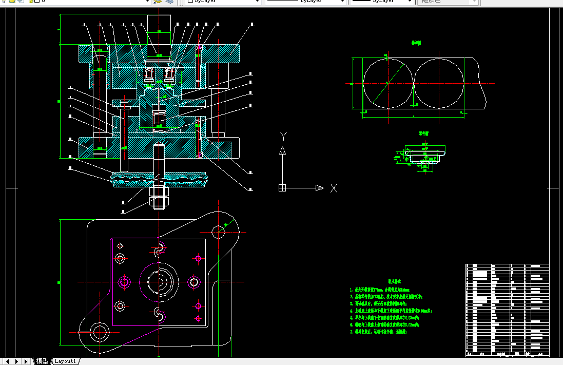 本次设计主要是通过对圆筒形零件拉伸、胀形的工艺分析与计算,更深一步的了解模具的组成和应用,并设计其成型过程中需要的模具。本设计采用对角导柱模架,使用滑动导柱导套导向。