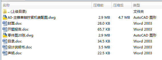 2、若题目上备注三维,则表示文件里包含三维源文件,由于三维组成零件数量较多,为保证预览截图的简洁性,本站将三维文件夹进行了打包。三维及CAD预览截图,均为本站电脑打开软件进行截图的,保证能够打开,下载原件超高清,下载后解压即可;