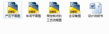 图纸:1.带控制点的物料流程图。2.车间平面布置图。3.主要设备的装配图。4.厂区平面图