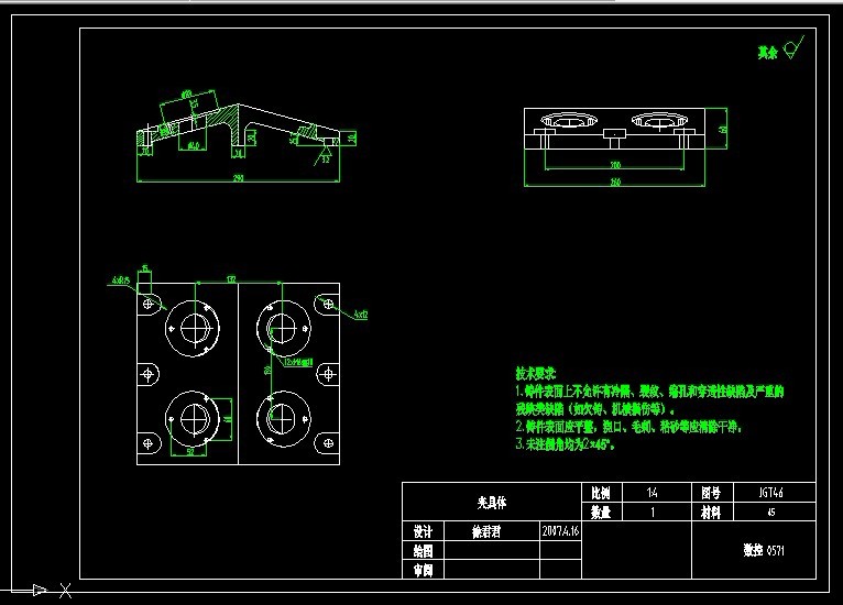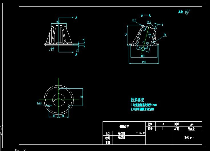 本课题设计的是高级轿车发动机排气联结管,是发动机排气的重要零件之一,其零件的好坏直接影响排气系统的正常运行, 是高级轿车,所以生产批量不是很大,我们要通过数控加工来实现加工要求。对于数控专业说,本课题的毕业设计是具有很大意义的.根据斜联结管的零件图制定加工工艺方案及数控加工工序卡,利用CAD/CAM绘制工装的三维造型,完成零件图、装配图及零件的NC代码。本设计侧重于数控加工工艺,数控编程及工装设计。数控加工具有柔性程度高、自动化程度高、加工精度高且加工质量稳定可靠、生产效率高、生产管理现代化等优点。数控加工作为现代机械制造业的重要标志,随着个性化产品日益为消费者钟爱,数控加工技术显得日益重要。随着CAD/CAM软件技术的进一步发展,几乎所有的个性化产品设计都在CAD软件中设计完成.并与CAM软件结合使三维造型出来的产品可以直接生成NC代码。这样使产品开发到产品出货的周期大大缩短,是现代制造业发展的必然趋势。