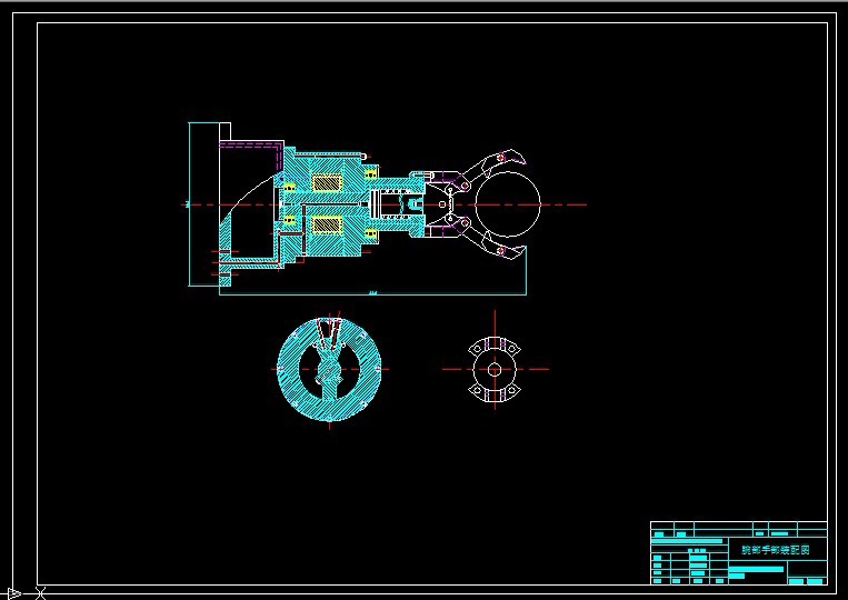 本文设计的关节型机械手采用圆柱坐标式,能完成上料、翻转等功能。此机械手主要由手爪、手腕、手臂和机身等部分组成,具有手腕回转、手臂伸缩、手臂升降和手臂回转4个自由度,能够满足一般的工业要求。