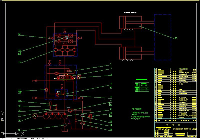 本次设计的是一个无缝三辊斜轧机芯棒运行液压系统,系统的最高压力为14MPa,通过的最大流量为1292L/min。