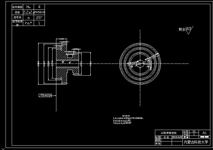 通过运动参数拟订设计方案,确定转速图,并拟订传统系统图,在保证机床运动和使用要求的前提下,运动链尽量短而简单,传动效率高,并设计反转和制动装置,画好装配图后,对主要零件进行验算如齿轮强度验算和主轴的验算,通常普通机床主轴只进行刚度验算,根据演算结果和对装配草图进行审查后,修改并完善装配图,编写零件代号和制定整个部件的技术条件。最后绘制正确的零件图,并编写设计计算说明书。