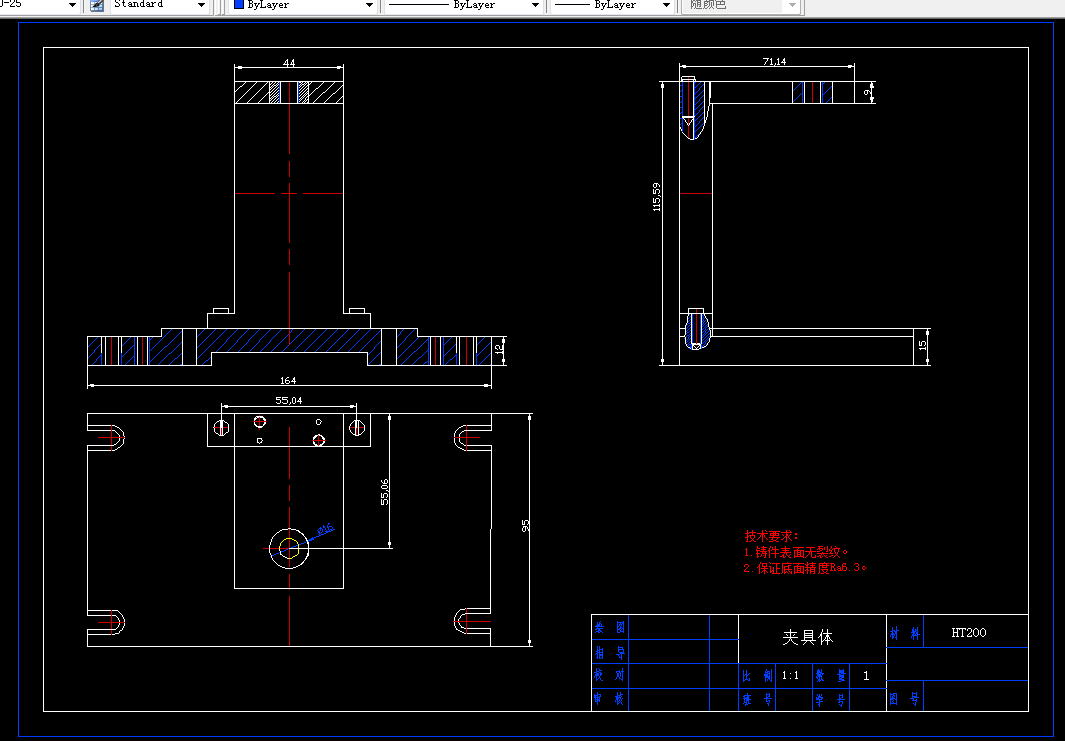 本次设计是刀架件的加工工艺规程及一些工序的专用夹具设计。刀架的主要加工表面是平面及孔。由加工工艺原则可知,保证平面的加工精度要比保证孔的加工精度容易。所以本设计遵循先面后孔的原则。并将孔与平面的加工明确划分成粗加工和精加工阶段以保证加工精度。基准选择以Φ32孔作为粗基准,以为刀架底面作为精基准。