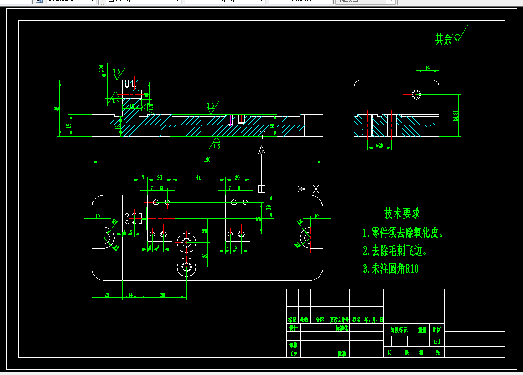 齿条加工工艺规程及其夹具设计是包括零件加工的工艺设计、工序设计以及专用夹具的设计三部分。在工艺设计中要首先对零件进行分析,了解零件的工艺再设计出毛坯的结构,并选择好零件的加工基准,设计出零件的工艺路线;接着对零件各个工步的工序进行尺寸计算,关键是决定出各个工序的工艺装备及切削用量;然后进行专用夹具的设计,选择设计出夹具的各个组成部件,如定位元件、夹紧元件、引导元件、夹具体与机床的连接部件以及其它部件;计算出夹具定位时产生的定位误差,分析夹具结构的合理性与不足之处,并在以后设计中注意改进。