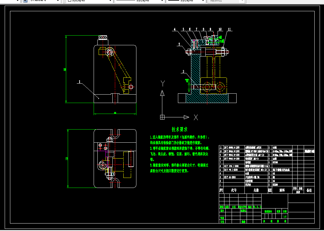 托架加工工艺规程及其钻孔的夹具设计是包括零件加工的工艺设计、工序设计以及专用夹具的设计三部分。在工艺设计中要首先对零件进行分析,了解零件的工艺再设计出毛坯的结构,并选择好零件的加工基准,设计出零件的工艺路线;接着对零件各个工步的工序进行尺寸计算,关键是决定出各个工序的工艺装备及切削用量;然后进行专用夹具的设计,选择设计出夹具的各个组成部件,如定位元件、夹紧元件、引导元件、夹具体与机床的连接部件以及其它部件;计算出夹具定位时产生的定位误差,分析夹具结构的合理性与不足之处,并在以后设计中注意改进。