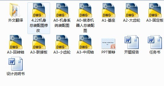 本课题的主要内容是采用机器人代替人来进行喷漆作业,机器人可以代替很多重复性的体力劳动,从而减轻工人的劳动强度,提高生产效率。结合设计的各方面的知识,在设计过程中学会怎样发现问题。解决问题.研究问题。并且在设计中融入自己的想法和构思,提高自己的创新能力。尽力使机器人使用方便,结构简单。