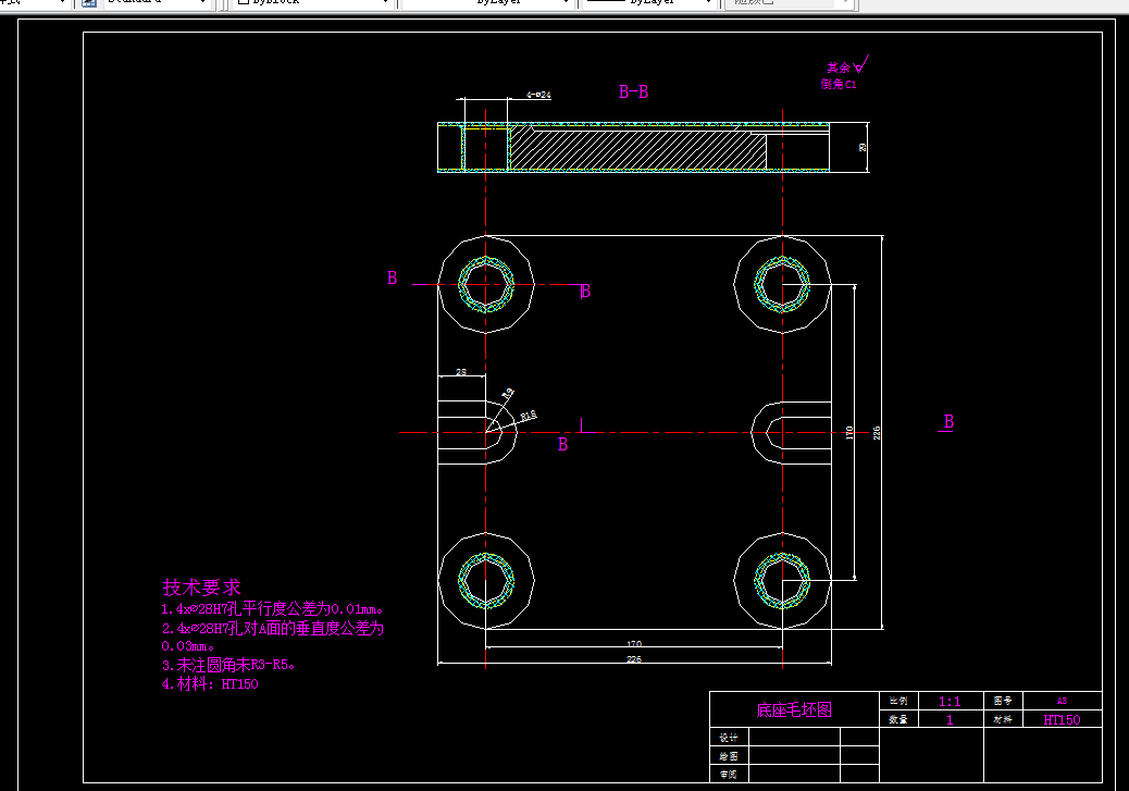 底座加工工艺规程设计是包括零件加工的工艺设计、工序设计两部分。在工艺设计中要首先对零件进行分析,了解零件的工艺再设计出毛坯的结构,并选择好零件的加工基准,设计出零件的工艺路线;接着对零件各个工步的工序进行尺寸计算,关键是决定出各个工序的工艺装备及切削用量。