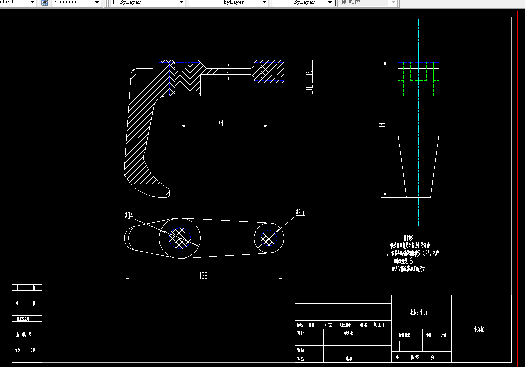 在这次的毕业设计中我选择的课题是汽车前拖钩工工艺与工装设计设计,说明书第一章是引言主要包括了两方面的内容一是设计说明二是设计目的;第二章是零件的分析包括了两个内容的作用和工艺分析;第三章是工艺规程设计主要内容包括了确定毛坯的制造形式 定位基准的选择、制订工艺路线、机械加工余量、工序尺寸及毛坯尺寸的确定。第4章 是确定切削用量及工时的计算。第5章是夹具的设计与计算