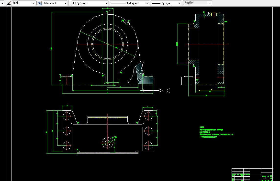 支承座加工工艺规程及钻孔的夹具设计是包括零件加工的工艺设计、工序设计以及专用夹具的设计三部分。在工艺设计中要首先对零件进行分析,了解零件的工艺再设计出毛坯的结构,并选择好零件的加工基准,设计出零件的工艺路线;接着对零件各个工步的工序进行尺寸计算,关键是决定出各个工序的工艺装备及切削用量;然后进行专用夹具的设计,选择设计出夹具的各个组成部件,如定位元件、夹紧元件、引导元件、夹具体与机床的连接部件以及其它部件;计算出夹具定位时产生的定位误差,分析夹具结构的合理性与不足之处,并在以后设计中注意改进。