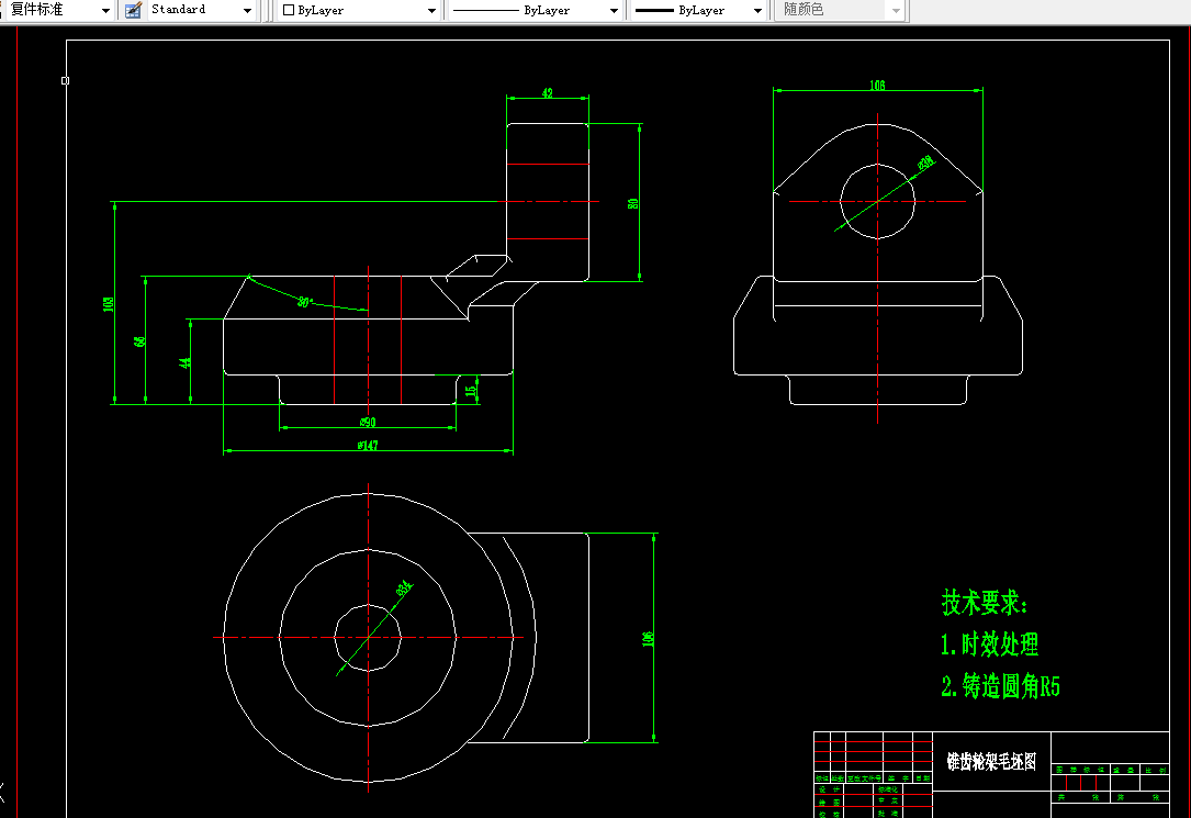 锥齿轮座加工工艺规程及夹具设计是包括零件加工的工艺设计、工序设计以及专用夹具的设计三部分。在工艺设计中要首先对零件进行分析,了解零件的工艺再设计出毛坯的结构,并选择好零件的加工基准,设计出零件的工艺路线;接着对零件各个工步的工序进行尺寸计算,关键是决定出各个工序的工艺装备及切削用量;然后进行专用夹具的设计,选择设计出夹具的各个组成部件,如定位元件、夹紧元件、引导元件、夹具体与机床的连接部件以及其它部件;计算出夹具定位时产生的定位误差,分析夹具结构的合理性与不足之处,并在以后设计中注意改进。
