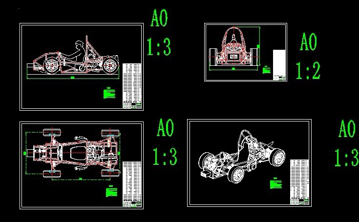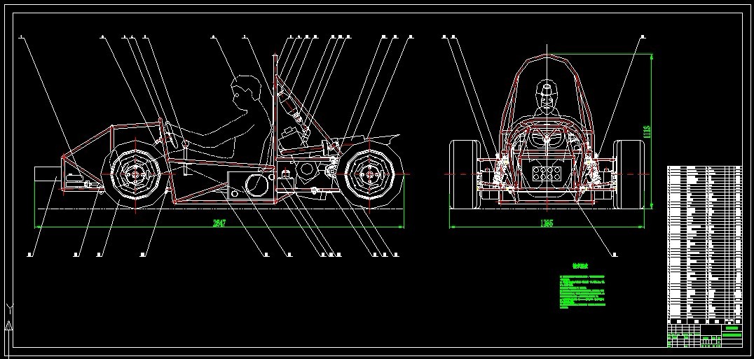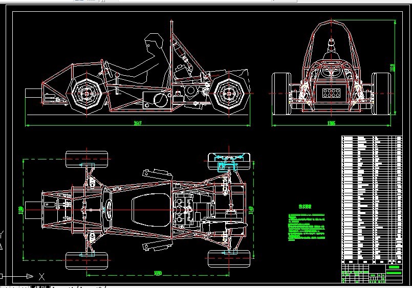 最后阶段,利用UG7.5进行导出赛车总体布置二维工程图,并制成总体参数表,并将第三代赛车与第二代赛车进行对比分析。对于考虑到的实际生产中可能发生变化的悬架、车架和转向部件,预留方案。