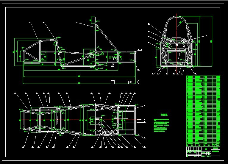 在车架设计之初,将方程式汽车大赛的有关规定和评分标准,作为后续车架设计的技术规范要求;为了达到车架结构设计合理性的目的,本设计参考了湖南大学、天津大学以及部分国外大学的车架。进入设计阶段,本设计通过分析比较几种车架的结构形式,决定选择桁架式车架,之后选择车架的材料为4130钢。然后依据技术规范、赛车的整体布置、发动机以及各总成的安装确定车架的具体尺寸,并在UG软件中建立车架的模型。再对车架进行优化设计和受力分析,使各总成能合理的布置在车架上,直至车架结构满足各个方面的要求。本设计还依据赛事规则对标准安全系统、赛车座椅以及附件进行了设计和说明。
