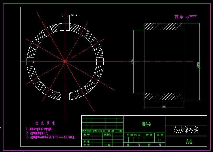实体保持架零件加工工艺及钻床夹具设计是包括零件加工的工艺设计、工序设计以及专用夹具的设计三部分。在工艺设计中要首先对零件进行分析,了解零件的工艺再设计出毛坯的结构,并选择好零件的加工基准,设计出零件的工艺路线;接着对零件各个工步的工序进行尺寸计算,关键是决定出各个工序的工艺装备及切削用量;然后进行专用夹具的设计,选择设计出夹具的各个组成部件,如定位元件、夹紧元件、引导元件、夹具体与机床的连接部件以及其它部件;计算出夹具定位时产生的定位误差,分析夹具结构的合理性与不足之处,并在以后设计中注意改进。