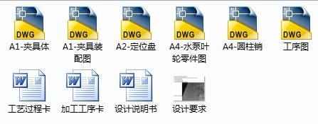 水泵叶轮零件加工工艺及夹具设计是包括零件加工的工艺设计、工序设计以及专用夹具的设计三部分。在工艺设计中要首先对零件进行分析,了解零件的工艺再设计出毛坯的结构,并选择好零件的加工基准,设计出零件的工艺路线;接着对零件各个工步的工序进行尺寸计算,关键是决定出各个工序的工艺装备及切削用量;然后进行专用夹具的设计,选择设计出夹具的各个组成部件,如定位元件、夹紧元件、引导元件、夹具体与机床的连接部件以及其它部件;计算出夹具定位时产生的定位误差,分析夹具结构的合理性与不足之处,并在以后设计中注意改进。
