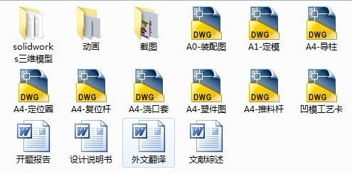 同时,在设计过程中,通过查阅大量资料、手册、标准、期刊等,结合教材上的知识也对注塑模具的组成结构(成型零部件、浇注系统、导向部分、推出机构、排气系统、模温调节系统)有了系统的认识,拓宽了视野,丰富了知识,为将来独立完成模具设计积累了一定的经验。通过本次的模具设计也是对大学四年学习的总结和检验。