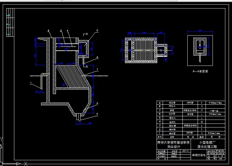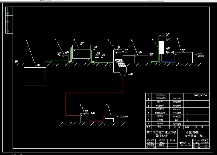 摘 要:电镀是世界三大污染行业之一,随着我国乡镇电镀企业的迅速发展,我国的电镀污染问题日趋严重。本文首先阐述了我国电镀废水的污染现状以及对人类产生的危害,在对化学处理、离子交换、电解法、生物处理等电镀废水处理方法的分析和比较后,结合乡镇电镀企业要求工艺简单、成本低等特点,决定采用NaHSO4化学还原沉淀法处理该企业的含铬、锌废水。本工艺是在pH=2.5时用NaHSO4溶液将Cr6+还原为Cr3+,在用NaOH溶液调节pH=8后生成Cr(OH)3和Zn(OH)2沉淀,在添加絮凝剂PAC和PAM后生成的絮体在斜板沉淀池中沉淀,出水经砂滤器过滤后可回用于砂滤器反冲洗水及各种溶液的配制,或者达标排放,而污泥则统一交于专业的环保公司处理。在设计中采用了较为先进的ORP测定仪、在线pH计和液位计实现反应过程的自动控制。通过设计计算确定了各构筑物的尺寸以及设备的选型,并对设计和操作管理中的要求进行了说明,最后对电镀废水治理的前景进行了展望。