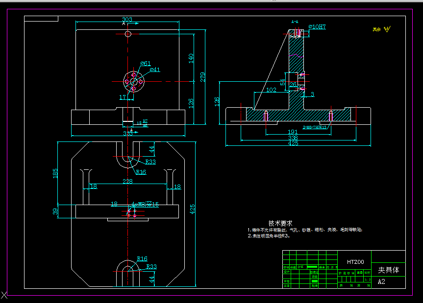 本设计是基于前钢板弹簧吊环零件的加工工艺规程及一些工序的专用夹具设计。前钢板弹簧吊环零件的主要加工表面是平面及孔系。一般来说,保证平面的加工精度要比保证孔系的加工精度容易。因此,本设计遵循先面后孔的原则。并将孔与平面的加工明确划分成粗加工和精加工阶段以保证孔系加工精度。基准选择以前钢板弹簧吊环的输入轴和输出轴的支承孔作为粗基准,以底面与两个工艺孔作为精基准。主要加工工序安排是先以支承孔系定位加工出顶平面,再以顶平面与支承孔系定位加工出工艺孔。在后续工序中除个别工序外均用顶平面和工艺孔定位加工其他孔系与平面。支承孔系的加工采用的是坐标法镗孔。整个加工过程均选用组合机床。夹具选用专用夹具,机构可以不必自锁,因此生产效率较高,适用于大批量、流水线上加工,能够满足设计要求。