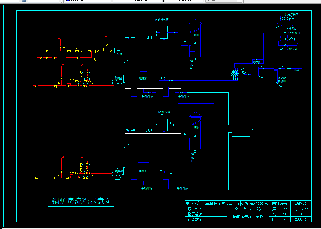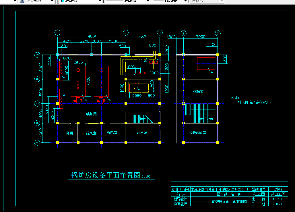 6、绘制施工图(室外供热管网平面图、检查井的大样图、锅炉房设备平面布置图、锅炉房燃气)