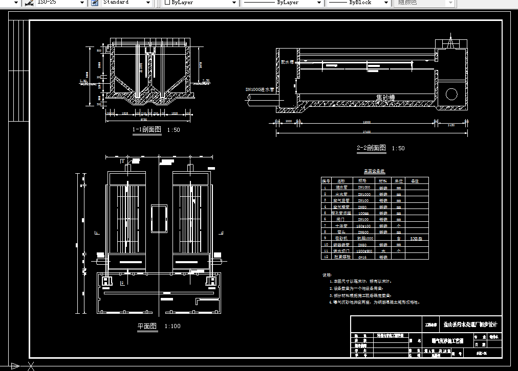 污水处理流程:粗格栅 → 污水提升泵房 → 细格栅 → 曝沉砂池 →A/O反应池→ 消毒接触池 → 计量槽 → 排放;