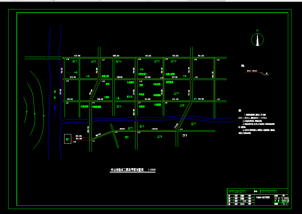 本设计题目为:中山市给水工程扩大初步设计(I),设计规模为:近期50000 ,远期65000 ,要求根据所给资料进行给水工艺设计和单体构筑物设计计算,包括取水输水构筑物设计、输配水管网设计、净水厂设计、工程概算和制水成本计算。净水厂采用工艺流程为: